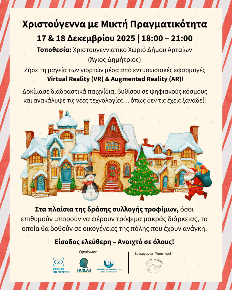 EpirusXRCenter & IEEE Student Branch University of Ioannina | Arta, in collaboration with the Municipality of Arta, invite young and old alike to a special festive event at the Municipality of Arta’s Christmas Village in Agios Dimitrios
