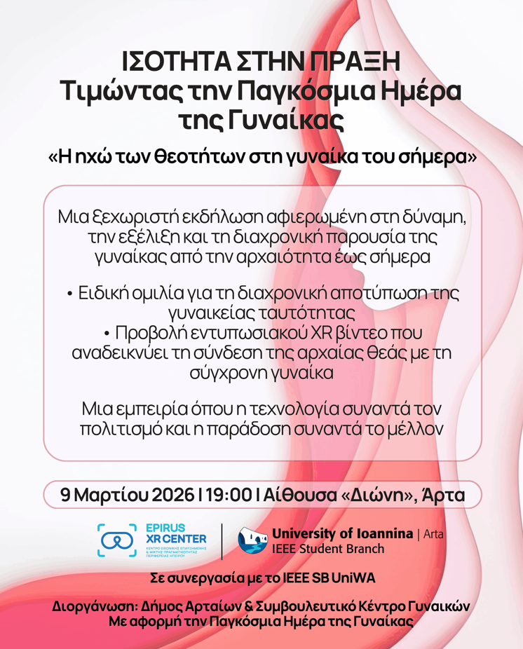 Read More6 Μαρτίου 2026 Anouncement,Event Ισότητα στην Πράξη – Το IEEE SB UOI | Arta και το Epirus XR Center συμμετέχουν...
